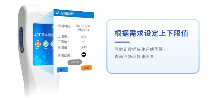 该设备为全新升级产品,大屏幕触摸显示屏,代替传统按键。操作采用生物化学反应方法检测ATP含量,ATP荧光检测仪基于萤火虫发光原理,利用“荧光素酶—荧光素体系”快速检测三磷酸腺苷(ATP)。ATP拭子含有可以裂解细胞膜的试剂,能将细胞内ATP释放出来,与试剂中含有的特异性酶发生反应,产生光,再用荧光照度计检测发光值,微生物的数量与发光值成正比,由于所有生物活细胞中含有恒量的ATP,所以ATP含量可以清晰地表明样品中微生物与其他生物残余的多少,用于判断卫生状况。 仪器应用: 天研细菌检测仪广泛应用于:细菌微生物检测、医药卫生、食品安全、市场执法、表面洁净度检测、医疗防疫、水质水政、生产线卫生、工业水处理、环保检测、海关出入境检疫及其他执法部门等多种行业。 仪器特性: 实用性 —— 可根据环境检测需求设定上下限值,做到数据快速评估预警,表面洁净度快速筛查。 灵敏度高 —— 10-15~10-18 mol 速度快 —— 常规培养法18-24h以上,而ATP只需要十几秒钟 . 可行性 —— 微生物数量与微生物体内所含ATP有明确的相关性。 通过检测ATP含量,可间接得出反应中微生物数量 可操作性 —— 传统培养方法需要在实验室由经过培训的技术人员进行操作;而ATP快速洁净度检测操作非常简便,只需简单的培训即可由一般工作人员进行现场操作。 体验更好 —— 试子套管采用插拔式灵活设计,可定期清洗长期使用,延长仪器寿命。 主要参数: 显示屏:3.5英寸高精度图形触摸屏 处理器:32位高速数据处理芯片 检测精度:1×10-18mol 大肠菌群:1-106cfu 检测范围:0 to 99999 RLUs 检测时间:15秒 检测干扰:±5﹪或±5 RLUs 操作温度范围:5℃到40℃ 操作湿度范围:20—85﹪ ATP回收率:90-110% 检出模式:RLU、大肠菌群筛查 50个用户ID 设定 可设定的结果限值个数:251个 自动判断合格与不合格 自动统计合格率 内置自校光源 开机30秒自检 配有miniUSB接口,可将结果上传至PC 配备专用软件驱动U盘代替传统光盘 仪器尺寸(W×H×D):188 mm×77mm×37mm 使用可充电锂电池免电池更换 备用状态(20℃):6个月 中文操作手册 稳定的液体荧光素酶 润湿的一体化采集拭子 随机配置:ATP荧光检测仪(手持)主机、铝合金手提箱、驱动U盘、仪器包、挂绳、PC数据线、数据分析软件、中文操作手册 ![]() ![]() ![]() ![]() ![]() ![]() ![]() ![]() ![]() ![]() |