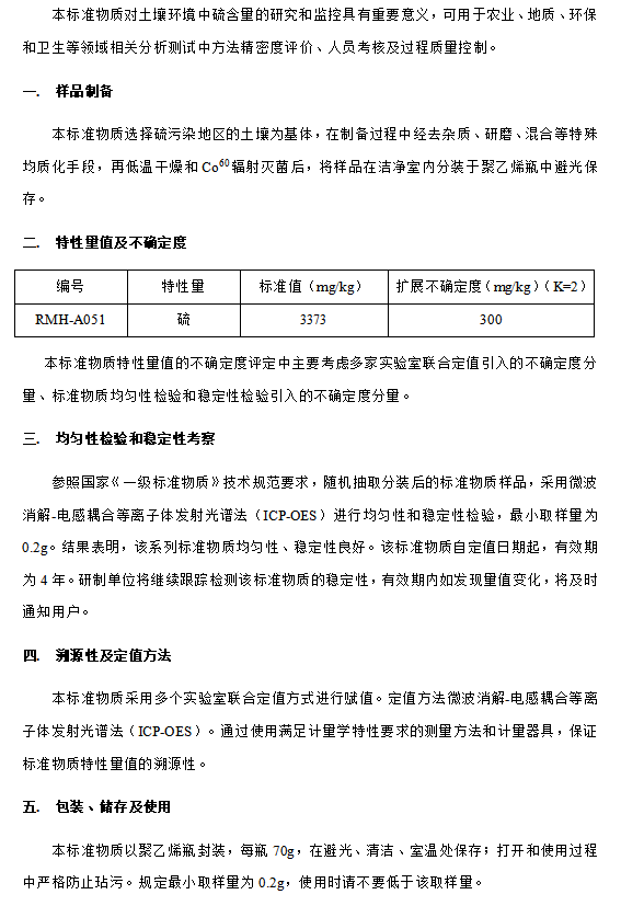土壤中全硫分析标准物质