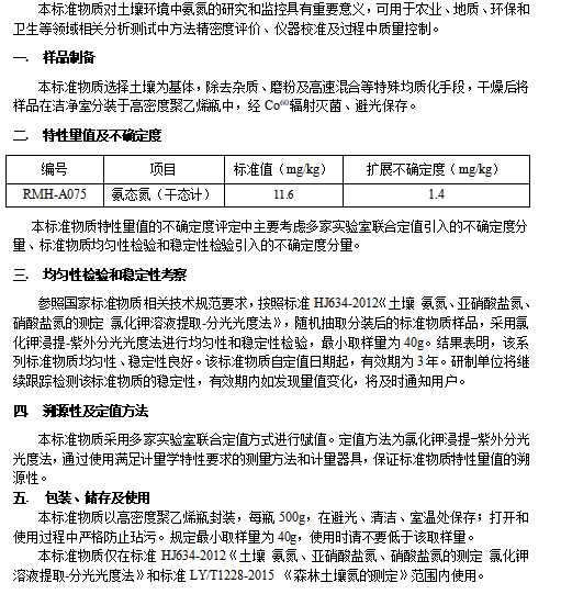 土壤中氨态氮分析质量控制标准物质