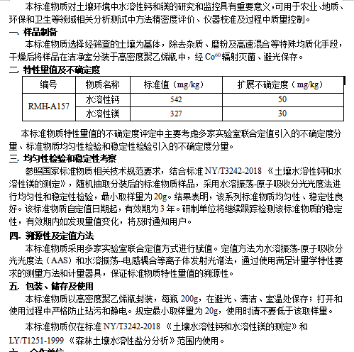 土壤中水溶性钙和镁分析标准物质