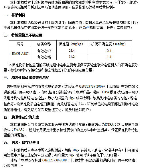 土壤中有效态铅和镉分析标准物质