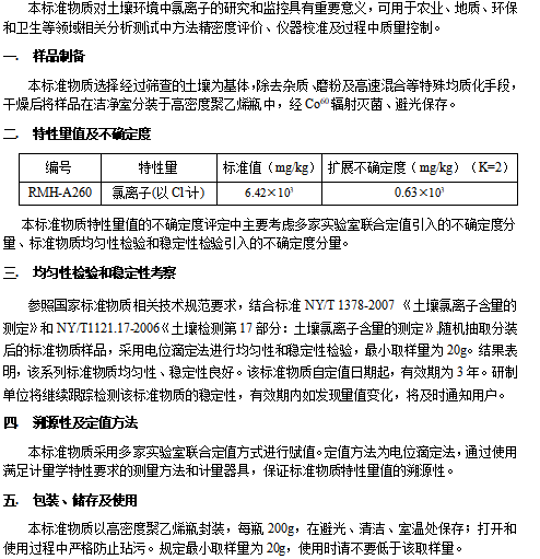 土壤中氯离子分析标准物质
