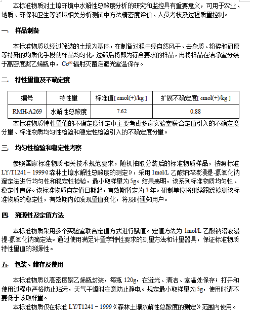 土壤中水解性总酸度分析标准物质