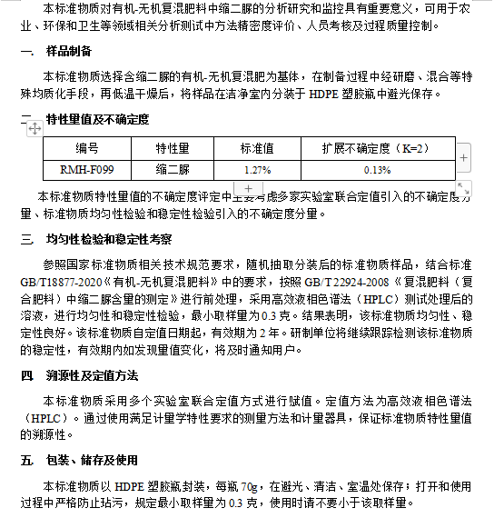 有机无机复混肥料中缩二脲分析标准物质
