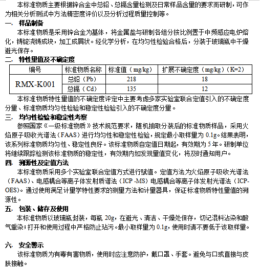 印刷纸中铅,铬,镉,砷成分分析标准物质