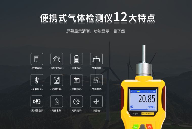 产品简要描述 ◆ 原装进口传感器,两级声光报警,中英文切换。 ◆ 外形小巧,便于携带。针对现场抽检使用。 ◆ 开机即可实时检测,实现一机多点检测。 ◆ 内置抽气泵,适用于狭小空间及微负压工况。 ◆ 带数据存储功能,可现场查看,导出EXCEL表格及PDF文档。 ◆ 可选配蓝牙打印机,可打印实时及历史数据。       | 检测气体 | 氢气(H2) | | 检测原理 | 催化燃烧原理、电化学原理 | | 测量范围 | 0-100%LEL、0-1000ppm、2000ppm、5000ppm、1%VOl、4%VOL | | 分 辨 率 | 0.1%LEL、0.01%VOL、1ppm | 气体单位 | ppm与%LEL、%VOL | | 检测方式 | 泵吸式 | 报警方式 | 声光报警、振动报警 | | 精 度 | ≤±3%(F.S) | 重 复 性 | ≤±1% | | 线性误差 | ≤±1% | 零点漂移 | ≤±1%(F.S/年) | | 响应时间 | ≤20秒 | 恢复时间 | ≤30秒 | | 防爆类型 | 本质安全型 | 防护等级 | IP65 | | 防爆标志/编号 | Ex ib IIC T3 GB/ CNEx17.2211 | 电池容量 | 3.7VDC,1800mAh | | 工作温度 | -20℃~+70℃ | 相对湿度 | 10%~95%RH (非凝露) | | 数据保存 | USB导出(标配存储10000条) | 传感器寿命 | 两年以上 | | 压力限制 | 86-106 KPa | 最大功耗 | 2.5W | | 尺 寸 | 125*52*30(mm) | 重 量 | 200g |