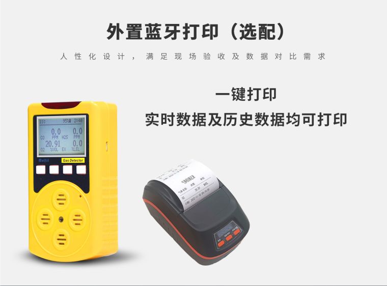 产品简要描述 ◆ 四合一(四种气体组合),气体种类任意组合。 ◆ 原装进口传感器,两级声光报警,中英文切换。 ◆ 外形小巧,便于携带。针对现场抽检使用。 ◆ 开机即可实时检测,实现一机多点检测。 ◆ 带数据存储功能,可现场查看,导出EXCEL表格及PDF文档。 ◆ 可选配蓝牙打印机,可打印实时及历史数据。