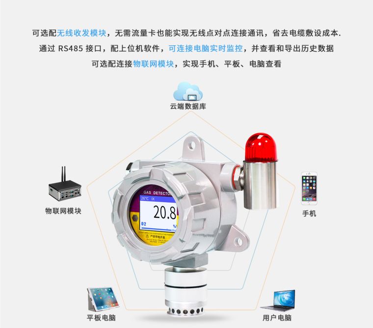 ◆ 可将浓度数据实时远传到集中控制平台、PLC、DCS等,