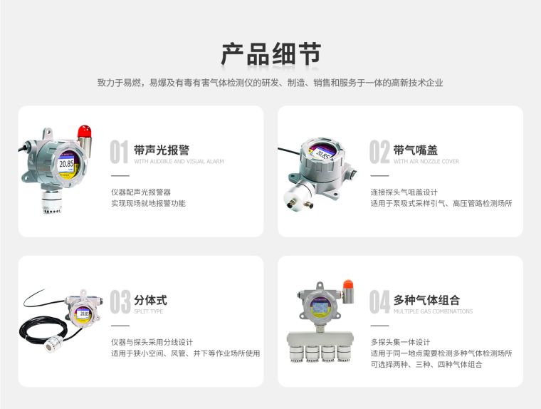 ◆ 原装进口传感器,两级声光报警,中英文切换。