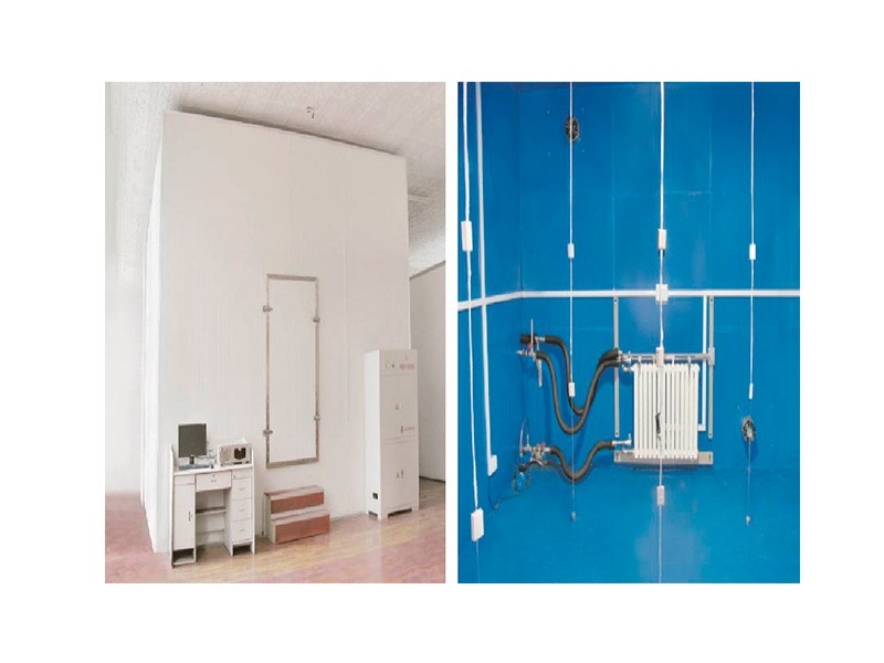 产品用途: 用于检测各种散热器热工性能,包括钢制柱型散热器、钢制板型散热器、灰铸铁柱型散热器、灰铸铁翼型散热器、灰铸铁柱翼型散热器、铝制柱翼型散热器、钢制闭式串片散热器、钢制翅片管对流散热器、钢管散热器等。 适用标准: GB/T13754-2015《采暖散热器散热量测定方法》 技术参数: 内空气温度:10~25℃,±0.2℃ 表面温度:10~25℃,±0.2℃ 室内相对湿度:30~70% 夹层空气温度:10~25℃,±0.5℃ 缓冲水箱水温:50~95℃,±0.5℃ 散热器进、出口水温:50~95℃,±0.1℃ 室内基准点控温精度:±0.1℃ 热水机输出水温:50~95℃,±0.1℃ 平衡时间:3~5个小时 保温外套层尺寸(长×宽×高):4500mm×5000mm×4300mm 流量称重装置尺寸:(长×宽×高):1000mm×2000mm×1800mm 电源:AC380V 15KW 主要特点: 1.该产品工控机自动检测,采用传感器、工控机技术,设计合理,结构先进、工艺性能良好,测试数据准确、可靠; 2.主要由四部分组成:1)闭式热工小室系统;2)水系统控制室;3)可控温送回风冷却系统;4)散热器测量室自控网络系统。 |