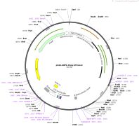 质粒名称:pBABEpuro HA Brca1 质粒编号:14999 载体名称:pBABE-puro 载体大小:5200 载体类型:哺乳动物表达,逆转录 筛选标记:嘌呤霉素 原核抗性:氨苄青霉素,100μg/mL 培养温度:37℃ 克隆菌株:DH5alpha 高拷贝/低拷贝:高拷贝 插入基因:Brca1 物种来源:H. sapiens (human) 基因名称:BRCA1 (a.k.a. BRCAI, BRCC1, BROVCA1, FANCS, IRIS, PNCA4, PPP1R53, PSCP, RNF53) 克隆方法:限制性内切酶 5'克隆位点:SalI (not destroyed) 3'克隆位点:SalI (destroyed during cloning) 5'测序引物:pBABE 5' 3'测序引物:pBABE 3' 质粒图谱: