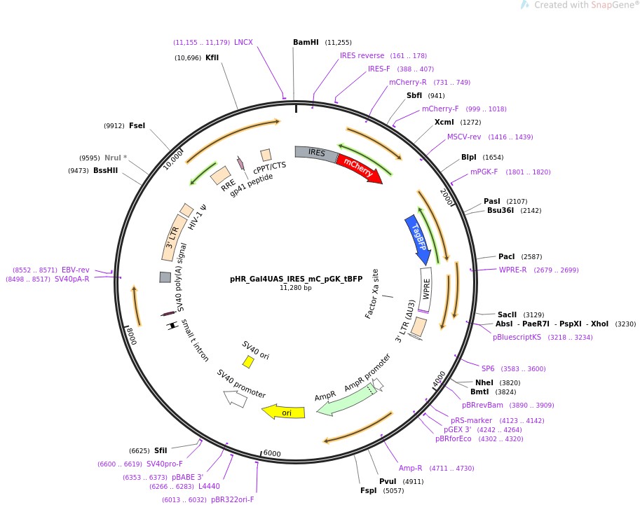 pHR-Gal4UAS-IRES-mC-pGK-tBFP