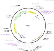 质粒名称:pHRdSV40-NLS-dCas9-24xGCN4_v4-NLS-P2A-BFP-dWPRE 质粒编号:60910 质粒备注: dCas9 fused to 24 copies of the GCN4 peptide v4, which is part of the SunTag system 载体名称:pHR 载体类型:哺乳动物表达,慢病毒,CRISPR 原核抗性:氨苄青霉素,100μg/mL 培养温度:37℃ 克隆菌株:Stbl3 高拷贝/低拷贝:高拷贝 插入基因:dCas9 启动子:dSV40 Promoter 标签/融合蛋白:· NLS (N terminal on insert) · HA (C terminal on insert) · 2x NLS (C terminal on insert) 克隆方法:限制性内切酶 5'克隆位点:Unknown (unknown if destroyed) 3'克隆位点:BamHI (not destroyed) 5'测序引物:SV40pro-F2 3'测序引物:mTagBFP-R 质粒图谱: