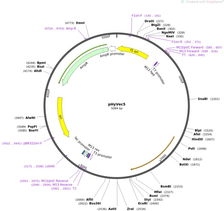 质粒名称:pHyVec5 质粒编号:34792 质粒备注: (Empty Backbone) 载体名称:Derived from pBluescript II SK+ 载体类型:Hydra Expression 原核抗性:氨苄青霉素,100μg/mL 培养温度:37℃ 克隆菌株:DH5alpha 高拷贝/低拷贝:高拷贝 启动子:Hydra vulgaris actin promoter 质粒图谱: