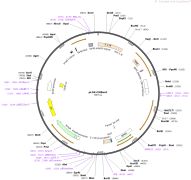 质粒名称:pLKO-p53-shRNA-941 质粒编号:25637 载体名称:pLKO.1 puro 载体大小:7032 载体类型:Mammalian Expression, Lentiviral, RNAi 筛选标记:嘌呤霉素 原核抗性:氨苄青霉素,100μg/mL 培养温度:37℃ 克隆菌株:Stbl3 高拷贝/低拷贝:高拷贝 插入基因:p53-shRNA-941 物种来源:H. sapiens (human) 插入大小:42 基因名称:TP53 (a.k.a. BCC7, BMFS5, LFS1, P53, TRP53) 克隆方法:限制性内切酶 5'测序引物:LKO.1 5' 质粒图谱: