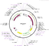 质粒名称:pMyosin-PSmOrange 质粒编号:31921 载体名称:pN1 载体类型:哺乳动物表达 筛选标记:新霉素(G418) 原核抗性:卡那霉素,50μg/mL 培养温度:37℃ 克隆菌株:DH5alpha 高拷贝/低拷贝:高拷贝 插入基因:PSmOrange 基因突变:S21T, Q63L, F100Y, L125M, K166R, P192S in PSmOrange (mutations are relative to mOrange but numbering is relative to EGFP) 插入大小:711 克隆方法:限制性内切酶 5'克隆位点:AgeI (not destroyed) 3'克隆位点:NotI (not destroyed) 5'测序引物:CMV-F 3'测序引物:SV40pA-R 质粒图谱: