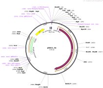 质粒名称:pNIC28-Bsa4 质粒编号:26103 质粒备注: (Empty Backbone) SGC Empty backbone for bacterial expression 载体名称:pET28a 载体大小:5353 载体类型:原核表达 原核抗性:卡那霉素,50μg/mL 培养温度:37℃ 克隆菌株:DH5alpha 高拷贝/低拷贝:低拷贝 插入基因:None 克隆方法:限制性内切酶 5'克隆位点:Ligation-Independent cloning (destroyed during cloning) 3'克隆位点:Ligation-Independent cloning (destroyed during cloning) 5'测序引物:T7F 3'测序引物:T7R 质粒图谱: