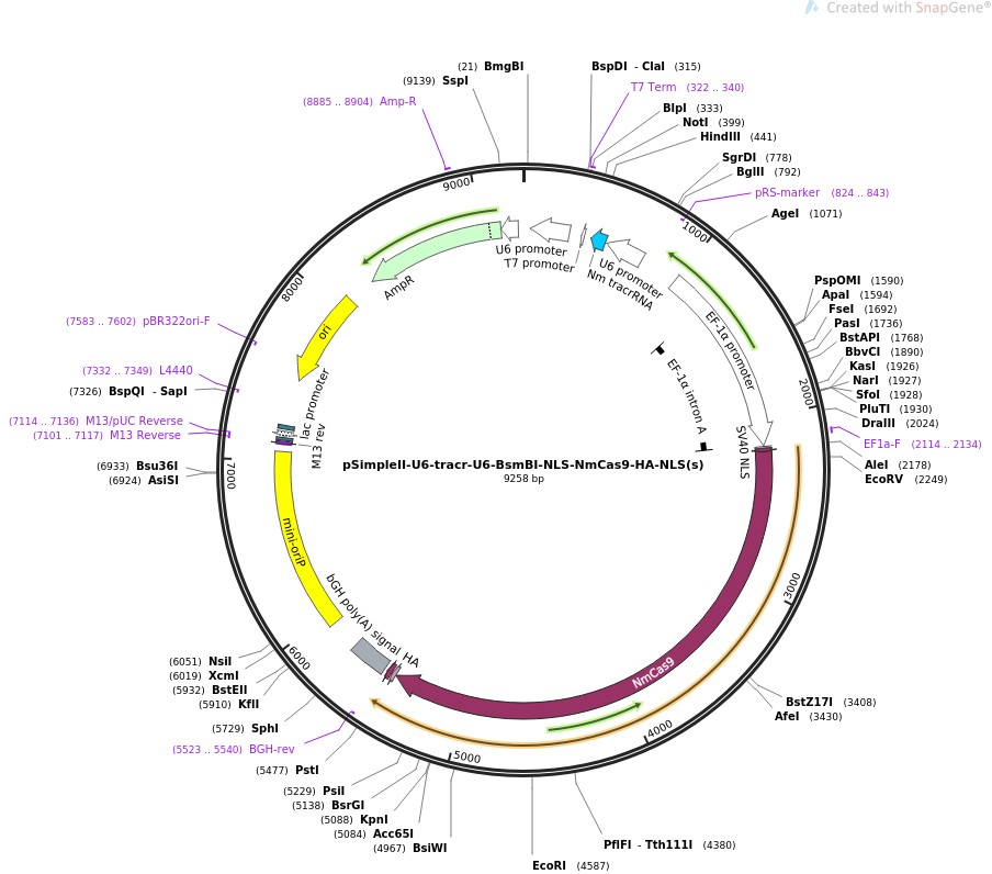 pSimpleII-U6-tracr-U6-BsmBI-NLS-NmCas9-HA-NLS(s)