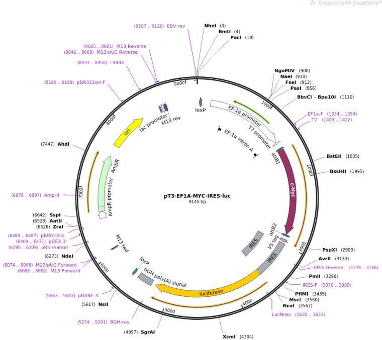 pT3-EF1A-MYC-IRES-luc
