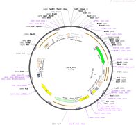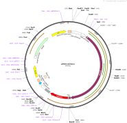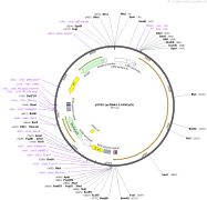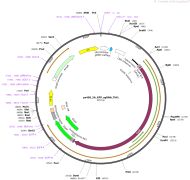 质粒名称:pU6-Sp-pegRNA-HEK3_CTT_ins 质粒编号:132778 质粒备注: S. pyogenes pegRNA for CTT insertion at the HEK3 site of human cells using prime editing 载体名称:pU6 载体类型:哺乳动物表达 原核抗性:氨苄青霉素,100μg/mL 培养温度:37℃ 克隆菌株:DH5alpha 高拷贝/低拷贝:高拷贝 插入基因:HEK3_CTT_ins pegRNA 物种来源:Synthetic 基因突变:See manuscript 插入大小:821 启动子:U6 克隆方法:Ligation Independent Cloning 5'测序引物:GACTATCATATGCTTACCGT 质粒图谱: