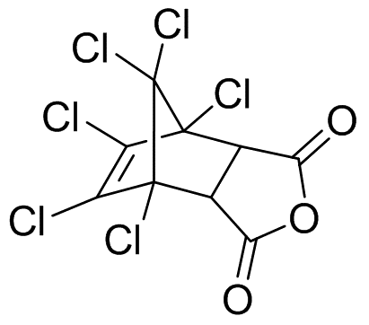 【溶解情况】 微溶于水、正己烷和四氯化碳,溶于丙酮、苯和甲苯。 易溶解于碱性溶液。 【用途】 用作环氧树脂的阻燃性的固化剂;在使树脂产生难燃性的同时,使树脂固化;难燃环氧树脂用作半导体的密封剂等。 【制备或来源】 以六氯环戊二烯和顺丁烯二酸酐为原料,在140~145℃下经Diels-Alder双烯加成反应而制得。 【其他】 有阻燃性,易吸湿而水解,生成氯菌酸。因为是含有大量氯的化合物,应注意避免吸入其粉尘及不要使粉尘粘在皮肤上。 |