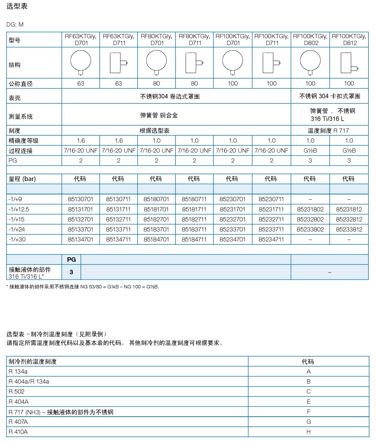 | 应用 | 用于制冷工程中同时测量蒸汽的压力和温度。 在测量气体或蒸气时,该仪表的使用必须符合EN837-2标准所规定的安全使用规范。 |