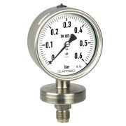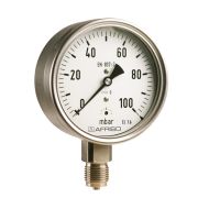 坚固的压力表,适用于海洋和陆地 玻纤增强的安全表壳,带防护挡板和泄压后盖 集成有压力补偿隔膜 氦气进行气密性测试 GOSSTANDART认证 技术参数 应用