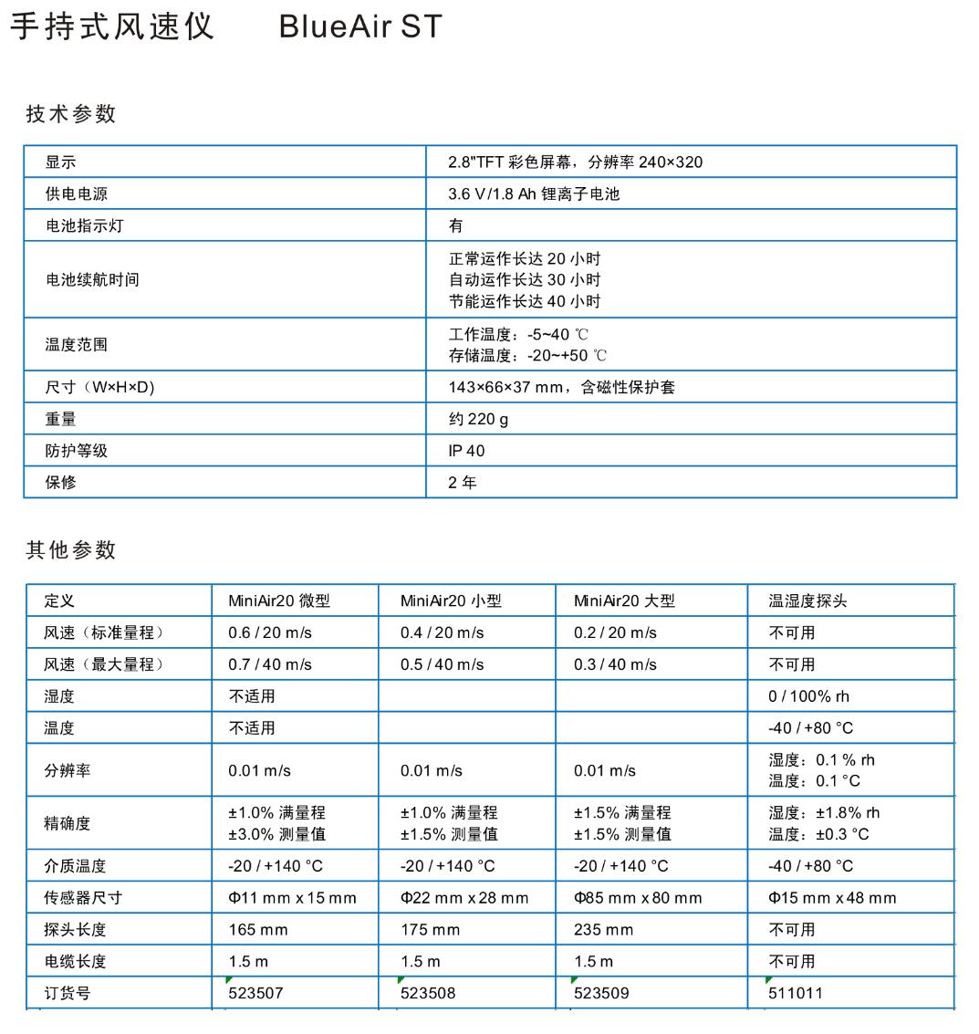 BlueAir ST风速测量仪