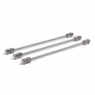 ZORBAX 色谱柱系列是反相 HPLC 中最常用的 HPLC 色谱柱系列之一。ZORBAX 色谱柱基于传统的全多孔填料颗粒,具有非常高的载样量和分离度。ZORBAX 色谱柱产品系列提供了多种固定相,如 Eclipse Plus、Eclipse XDB、StableBond、Bonus-RP 等等,使您能够选择所需选择性,以满足您的应用需求。采用亚 2 µm 颗粒填料提高分离度尽可能提高系统效率,让您可以充满信心地放大至制备型 HPLC,轻松实现 HPLC 方法转移。 特性 传统的全多孔填料颗粒,提供 1.8 µm、3.5 µm 和 5 µm 粒径。所选产品还提供适用于制备型 HPLC 的 7 µm 填料颗粒(参见制备型液相色谱柱部分) 获益于全多孔硅胶基色谱柱的出色性能,ZORBAX Eclipse Plus 色谱柱是中性 pH 时方法开发的** ZORBAX StableBond 色谱柱为 pH 值低至 1 的低 pH 应用提供了非常高的稳定性,而 ZORBAX SB-Aq 为高含水量流动相(包括 100% 水)提供了稳定、可重现的分离 ZORBAX Eclipse XDB 色谱柱(C18、C8、苯基和氰基)提供四种键合固定相,用于方法开发优化。色谱柱采用专利工艺进行超密键合 (XDB) 和双封端,以尽可能多地覆盖活性硅醇基。Eclipse XDB 色谱柱可选择 1.8 µm、3.5 µm、5 µm 和 7 μm 的粒径,实现高速、高分离度、分析和制备型分离 对于碱性化合物,ZORBAX Extend-C18 色谱柱能够在 pH 值高达 11.5 的高 pH 应用中提供高效率和高选择性优势 ZORBAX Bonus RP 色谱柱具有独特的选择性,因为在 C14 烷基链中嵌入了酰胺基团,使其成为 100% 水相流动相和无法保留在标准反相色谱柱上的化合物的理想选择 ZORBAX Rx 色谱柱由高纯度 (> 99.995 %) 多孔硅胶制成,具有更高的碳载量 (12%) ZORBAX Eclipse PAH 色谱柱能够为 EPA 610 中的 16 种多环芳烃 (PAHs) 提供高分离度分离,并已经过 PAHs 的专门测试,具有极高的重现性 ZORBAX 超高压快速高分离度 (RRHD) 色谱柱采用 1.8 μm 颗粒填料,在 1200 bar 下仍保持稳定,可使您实现复杂样品的快速、高分离度分离 ZORBAX 超高压快速高通量 (RRHT) 色谱柱使用 1.8 μm 全多孔颗粒填料,可在 600 bar 压力限值内的超快速、高分离度分析中提供高分离度 安捷伦 UHPLC 保护柱延长了分析柱的寿命,不损失分析性能,使用易于安装的硬件,可以直接连接到色谱柱的末端 产品简述 ZORBAX Bonus-RP, 4.6 x 250 mm, 5 µm, 400 bar, MVK, 3/pk 技术参数