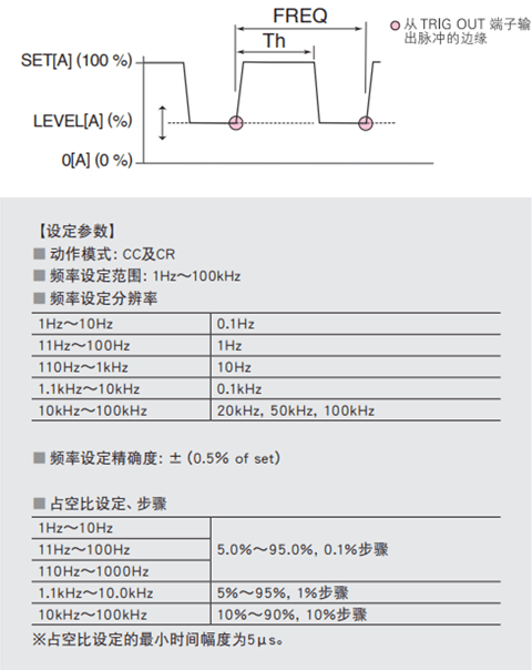 在恒流模式和恒阻模式中,可以进行Max100kHz的开关操作。即使在加载中也可以更改等级,频率,占空比等设置参数。