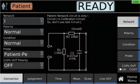 除了常规电气设备,也支持医疗设备的各种泄漏电流测试(Patient Current)。另外,也可以简单地设定网络(测试所使用的测量电路网)。