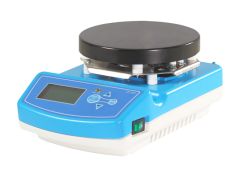磁力搅拌器是由微电机带动耐高温强力磁铁旋转产生旋转磁场来驱动容器内的搅拌子转动,从而对容器内液体进行搅拌、混合或辅助加热,以便溶液在设定温度进行充分混合,可应用于生物、医药、化学等领域。 产品特点: ●液晶显示屏,菜单式操作界面,温度、转速和计时等参数一屏显示,简单易懂,便于观察和操作。 ●具有微电脑控制技术,确保搅拌粘度不断变化的情况下转速保持恒定。 ●铝合金压铸外壳,有耐高温和耐腐蚀易清洁等特点。 ●加热台面基体材质是铝合金,外部喷涂复合材料涂层,既有良好的导热效果,又具有耐腐蚀性能,平滑的搅拌台面易清洁,无污染物停留。 ●输出扭力大,适合搅拌低粘度大容量或高粘度小容量的溶液。(不同机型不同容积) ●控制面板上方设计有防腐蚀导液槽,即使搅拌过程中液体溢出也不会造成搅拌器内电子器件的损坏。 ◆ 安全保护 ●温度偏差保护:09A/B系列实测温度超过设定温度某个值时(10℃-30℃)会停止加热。 ●防烫警示灯:09A/B系列工作盘温度超过55℃则指示灯闪烁提醒用户工作盘不能触碰。 ●特殊保护:防烫罩(选配件、价格:600元)。 技术参数: