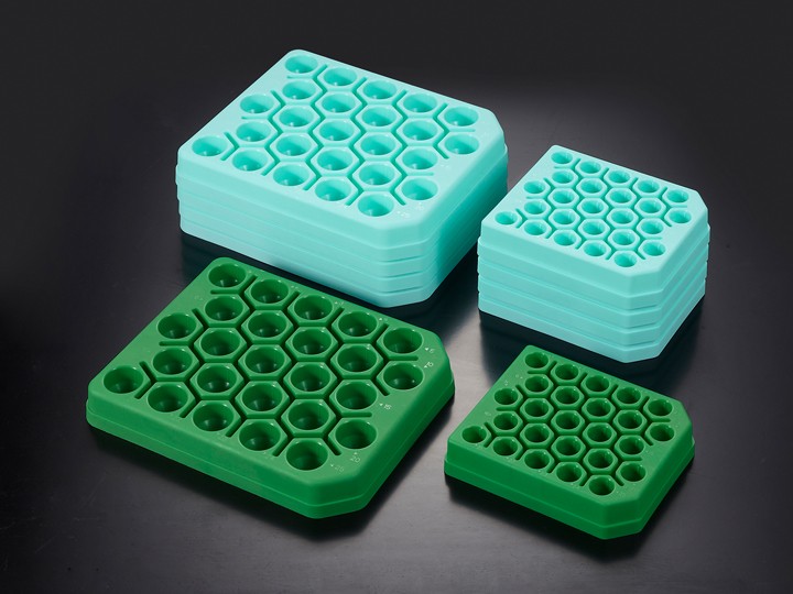 塑料离心管架为实验室节省更大空间,使用方便,是样品处理和样品短期(或长期)存贮的理想工具。 适配规格:15mL 50mL 颜色:荧光绿 深绿 白色 蓝色 材质 ◆ 聚丙烯(PP)符合USP CLASS VI标准 特点 ◆ 适用于15mL 、50mL的离心管,表面带标记易于辨认及方便实验记录 ◆ 可重叠放置,节省空间 ◆ 耐温范围:-80℃~121℃ ◆ 可重复清洗使用 ◆ 辐照灭菌和非灭菌可选,辐照灭菌,SAL 10-6 ◆ 无DNase/RNase,无热原 参数信息