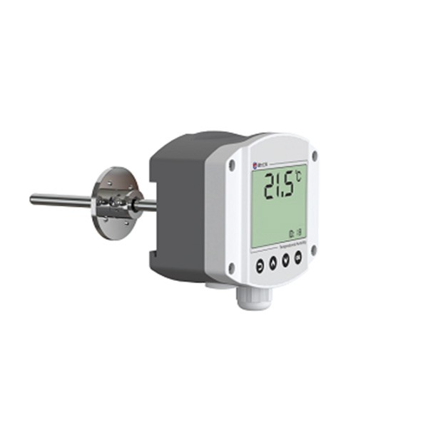 工业探杆温度变送器采用我公司**的温度测量技术。输出信号类型为RS485,最远可通信2000米,标准的ModBus协议,支持二次开发;广泛应用于楼宇自动化、气候与暖通信号采集、大棚温室以及医药化工等行业。 功能特点 采用高精度温度测量单元,典型温度年漂移≤0.03℃。 采用专用的485电路,标准ModBus-RTU通信协议,通信地址及波特率可设置。 现场可通过按键修改地址、波特率。 交直流供电均可,DC12~36V 或者 AC24V(±20%)。 滑动式法兰或套管安装,安装高度可调节。 技术参数