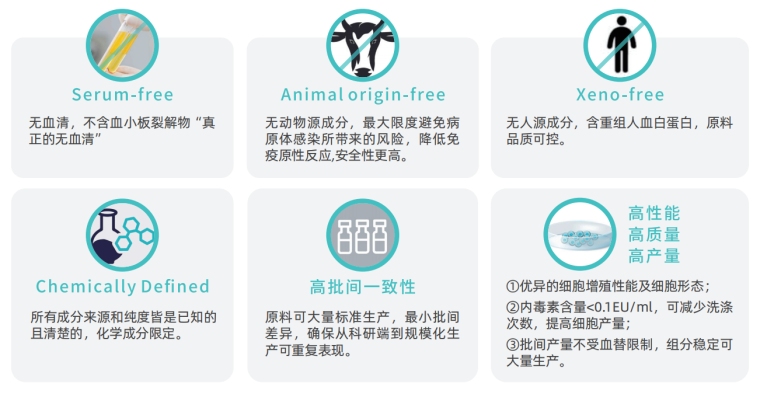 无血清,不含血小板裂解物 无动物源成分 无人源成分,含重组人血白蛋白 化学成分明确,批间高度一致性 高效性,支持MSCs原代和传代培养 GMP规范生产,支持药物申报 新一代间充质干细胞化学成分限定培养基 Chemically Defined Medium For Mesenchymal Stem cell StarMedium® MSCs CD Medium基于先进的培养基配方研发及生产技术,按照GMP规范生产,满足您从研发端到产业化临床应用的**转接。