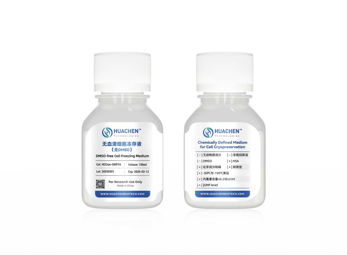 华辰生物hyperCryoCell™系列冻存液 hyper-CryoCell系列冻存液为干细胞、免疫细胞治疗用在超低温环境(-80℃与-196℃)保存用生物介质,是预先配置的即用型冷冻保护剂,系列产品均采用无血清技术配方,均采用临床注射级成分,配方优越,可支持细胞长期储存,安全稳定,复苏活率高。