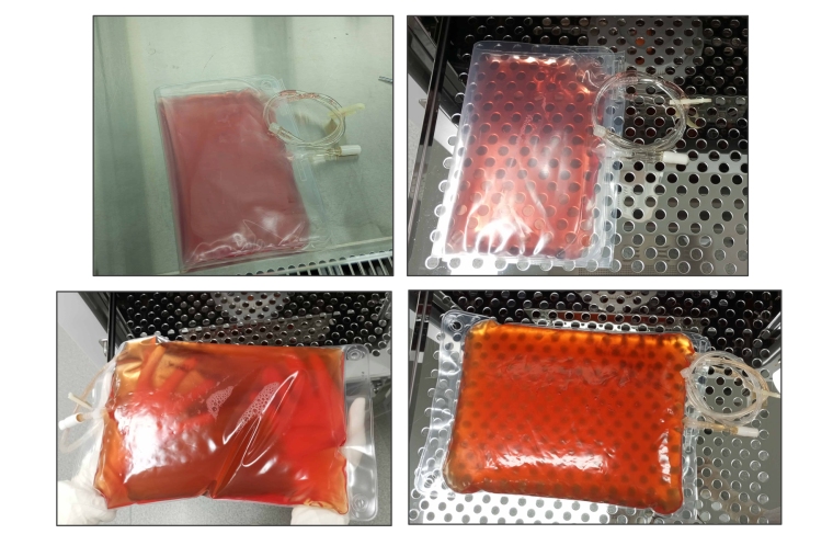 i-Cult-650A培养袋适用于培养悬浮细胞 主要用于T细胞、NK细胞、NKT细胞、γδT细胞等人体淋巴细胞的培养 产品描述: i-Cult-650A培养袋是一种由特殊透气材料制作的能够支持悬浮细胞高密度生长的细胞培养容器。i-Cult-650A培养袋包含两个通过无针注射部位连接的PVC管路,一长一短。短管路末端带有注射器针可插入的橡胶堵头,表面覆盖橡胶帽,方便抽取采样或加入培养添加剂等,同时保证无菌性;长管路末端配套鲁尔接头,方便每次补液,管径大小符合无菌接管设备的要求,也可通过无菌接管热封,进一步降低培养物污染的风险。 产品材质: 袋体采用可透气的EVA膜,可有效对细胞培养液进行气体交换,保障细胞的快速增殖,同时隔绝培养袋表面和环境中的水和其他液体、粒子等,保证培养过程的无菌安全。 容积: 200ml~1800ml i-Cult-650A培养袋特点和优势: 采用透明无色的EVA材质,方便肉眼和显微镜下直接观察细胞生长状态; 管路采用无色透明的PVC,长度45cm,可进行多次热合或无菌接管,方便长时间的培养过程,安全性更高; 2D培养袋的两面袋体皆可进行气体交换,气体交换面积大,与培养瓶相比,可获得更高密度的细胞; 封闭性强,大大降低细胞污染和操作人员感染的几率; 单个培养袋独立包装,使用更安全。 i-Cult-650A结构示意图: