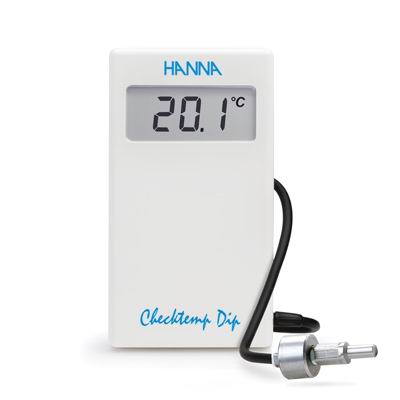 防水设计高精度温度测量仪,摄氏度单位和华氏度单位快速切换。AISI316配重式不锈钢温度探头和3m加长硅树脂材质连接线,符合国际HACCP食品管理分析规范,广泛适用于酒桶、奶罐、水库、湖泊、泳池等样品的温度测量。CAL CheckTm功能可开机自检提醒校准。 产品特点 CAL Check ™ 核查功能,开机自检并提醒校准 液晶显示,响应速度快,测量精度高 符合IP65防水标准,适用于不同环境测量 AISI316 配重式不锈钢温度探头 3m加长硅树脂材质连接线,满足深度测量需求 适用于HACCP食品管理,应用广泛,性价比优良 技术参数