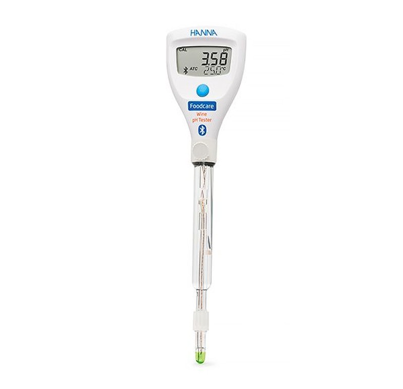 测量范围:0.00 to 12.00 pH,解析度:0.01 or 0.1pH,精度:±0.05 pH; 内置专用电极 HALO2无线葡萄酒pH测试仪准确易用,可测量酿酒过程中的每个步骤的pH值:从预发酵和发酵到后发酵和装瓶。HI9810332可以用作独立的pH测试仪,也可以连接到Hanna实验室应用程序。 •集成的蓝牙模块允许测试仪通过Hanna Lab应用程序连接到兼容的智能设备 •紧凑、防水的外壳,与Hanna Lab应用程序一起使用时,可在最多三点或四点处自动校准pH值 •自动温度补偿读数 产品特点 电极特征 玻璃机身 HI9810332采用易于清洁的无孔玻璃机身。专用低温(LT)pH玻璃可确保在较低温度下快速稳定并获得准确的结果。 可再填充电极 双结设计提供了一种与样品相互作用的无银电解质溶液,使电极不易堵塞,并保证快速响应和稳定读数。 内置温度传感器 pH电极尖端的内置温度传感器允许快速测定样品温度和高精度的温度读数。 技术参数