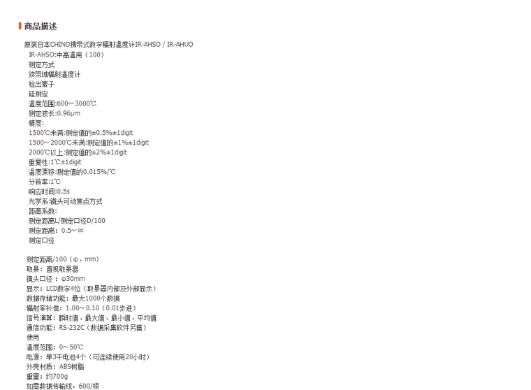 我对您的红外线温度计IR-AHSO产品感兴趣,请发具体的信息及报价,谢谢!