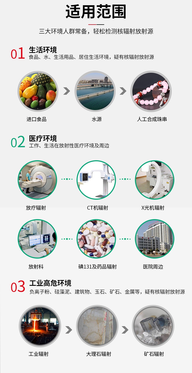 产品介绍: 该产品是一款小型的个辐射剂量报警仪,采用了嵌入式微处理器作为数据处理单元,探测器采用的是GM计数器。仪器具有响应快,测量范围宽,应用范围广的特点。可监测χ、γ射线和硬β射线,是一款通用型辐射剂量测量仪。