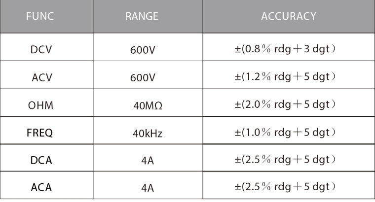 FEATURES Simple to get started, secondary insulation body design, automatic identification, NCV induction voltage test, resistance, on-off beep test, data hold. Flashlight illumination and other functions. |