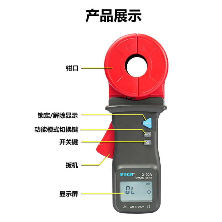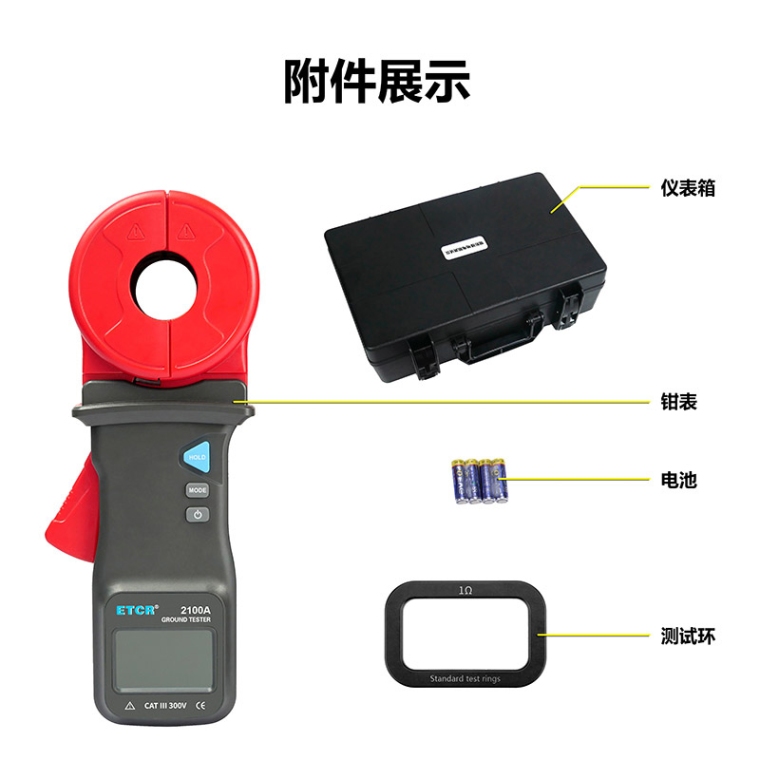 ETCR2100A钳形接地电阻仪是传统接地电阻测量技术的重大突破,广泛应用于电力、电信、气象、油田、建筑及工业电气设备的接地电阻测量。ETCR系列钳形接地电阻仪在测量有回路的接地系统时,不需断开接地引下线,不需辅助接地极,**快速、使用简便。 ETCR2100A钳形接地电阻仪能测量出用传统方法无法测量的接地故障,能应用于传统方法无法测量的场合,因为ETCR系列钳形接地电阻仪测量的是接地体电阻和接地引线电阻的综合值。另外,C型钳形接地电阻仪还能测量接地系统的泄漏电流和中性线电流。 一.产品特点 1、接地电阻测试技术的重大突破、非接触式测量**快速。 2、在测量有回路的接地系统时,不需断开接地引下线,不需辅助接地极,省时省力。 3、钳形接地电阻仪能测量出用传统方法无法测量的接地故障,能应用于传统方法无法测量的场合。 4、声光报警功能、数据存储、数据保持功能。 二.技术规格