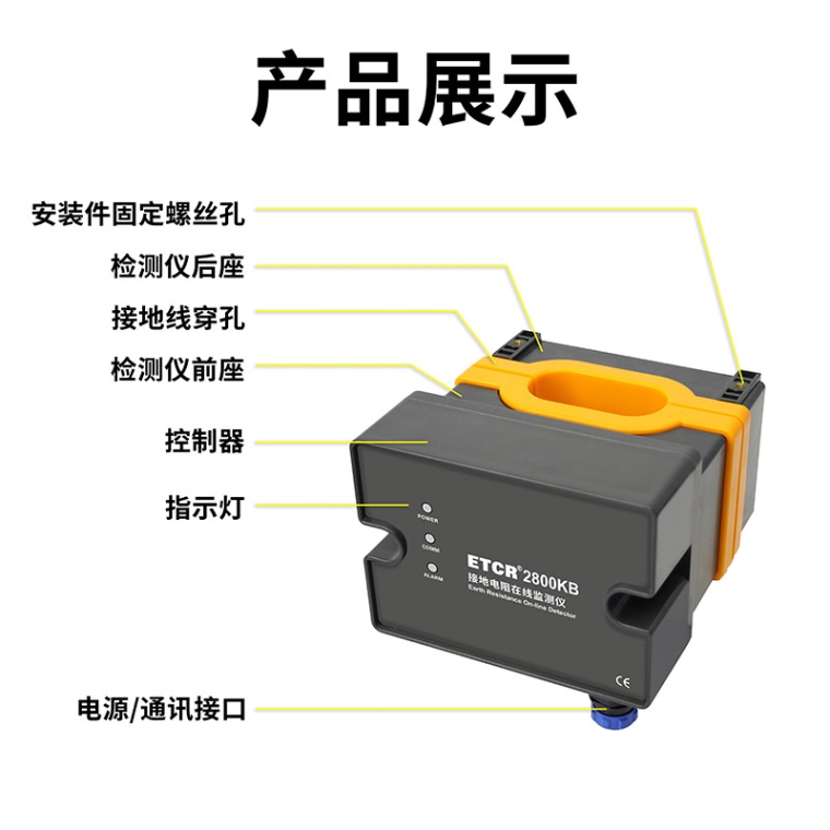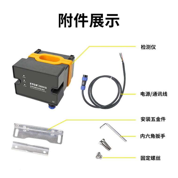 ETCR2800KB接地电阻在线检测仪用于在线监测接地电阻、接地引下线的连接状况、回路接地电阻、金属回路联结电阻,还可以在线监测接地电流。又称接地电阻在线测试仪、回路电阻在线监测仪。检测仪采用非接触测量技术、地线穿心通过传感器、绝不影响防雷接地效果和设施的正常运行;检测仪有多种结构适应不同场所使用;检测仪防护等级IP54,可在户外安装使用。检测仪广泛应用于输电线路杆塔接地;气象防雷接地;石油化工接地;通讯接地;变配电站接地;铁路设施接地;建筑仓库接地;金属回路阻值;电气设备接地等。 ETCR2800KB接地电阻在线检测仪由传感器、控制器、安装五金件等组成,传感器有闭环式与开合式,控制器有整体式与分体式,以适应不同的应用环境。其中开合式结构,安装时无需断开接地引下线,方便快捷。检测仪可以单个安装使用,也可以自行组建成有线网络系统或无线网络系统使用。检测仪具有RS485有线通讯和4G无线通讯方式,支持ModBus协议,通过后台实现远程在线监测。 ETCR2800KB接地电阻在线检测仪已通过防爆认证,其**防爆认证参数整机满足GB3836.1-2021和GB3836.4-2021标准相关要求。其防爆标志为Ex iaⅡB T3 Ga。防爆合格证号:CE23.3868X。它可应用于相应的易燃易爆环境中。 产品特点 1、产品有多种结构以适应各种场所应用。 2、闭环式检测仪,成本较低,安装时需断开接地引下线。 3、开合式检测仪,安装时不需断开接地引下线,安装方便快捷。 4、分体式检测仪,控制器与传感器分开安装,便于观察测量结果,或集中管理。 5、检测仪具有壁挂式安装及接地线安装2种安装方式。 6、多种通讯方式:RS485/4G,支持ModBus协议。 7、防雷功能,适用于室外多雷击场合。 8、报警功能:可设置报警临界值,具有声光报警指示。 9、已通过防爆认证,防爆标志为Ex iaⅡB T3 Ga。 10、防护等级:IP54。 技术参数