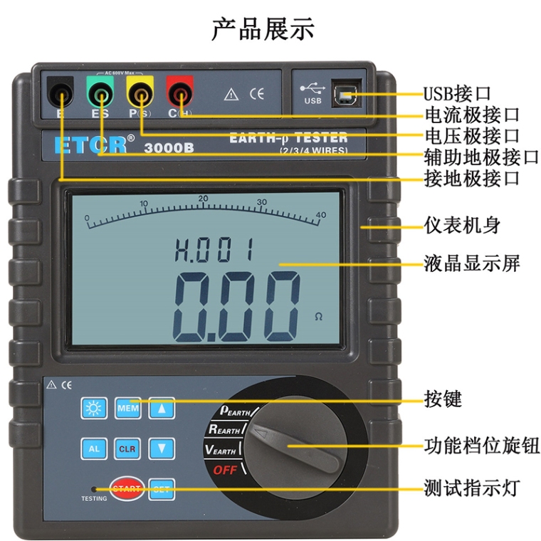 量 程 | 接地电阻:0.00Ω~30.00kΩ |