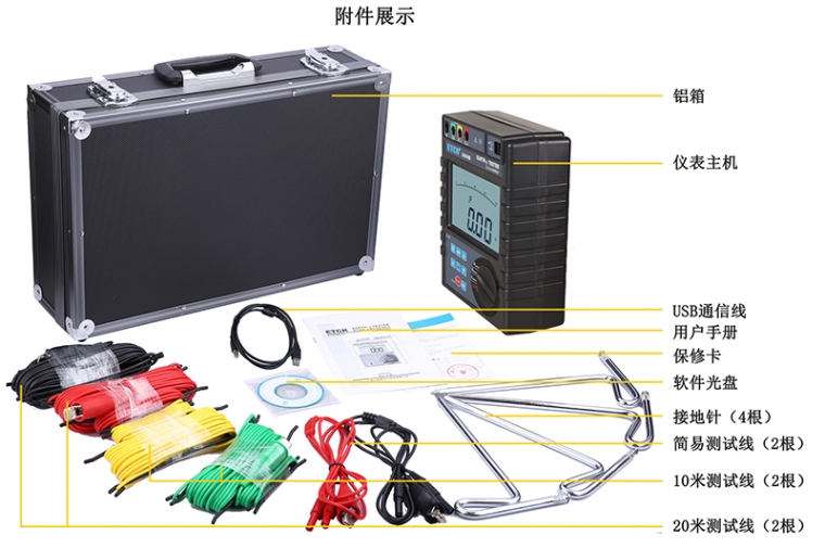标准测试线 | 4条:红色20m,黑色20m,黄色10m,绿色10m各1条 |