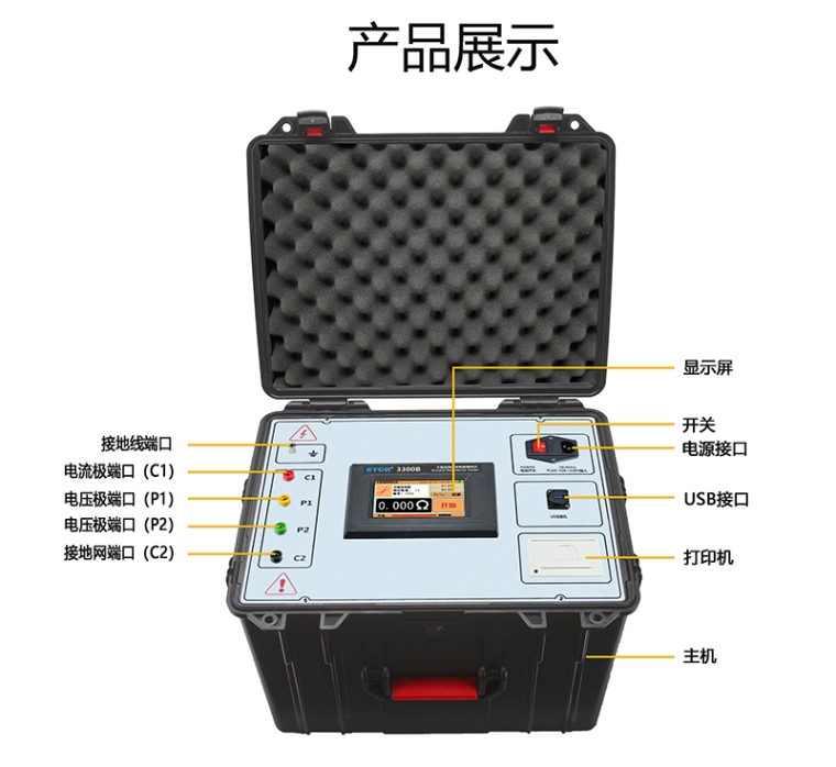 一、产品简介 是我公司精心研发的变电站地网、发电厂、微波站、通讯基站等大型地网的工频接地阻抗、接地电阻、土壤电阻率、简易跨步电压测试仪,仪器采用触摸彩屏操作特别方便简捷,点击“帮助”键操作提示一目了然,仪器采用了新型变频交流电源及微机处理控制和信号处理等措施,很好的解决了测试过程中的抗干扰问题,简化了试验操作过程,提高了测试结果的精度和准确性,大大降低了试验人员的劳动强度和试验成本。仪器采用超强的自动变频抗干扰技术,配合400V/5安培大功率输出,能在强干扰环境下准确测得工频50Hz下的数据。适用于测试各类接地装置的工频接地阻抗、接地电阻、土壤电阻率、跨步电压等工频特性参数。 的测试计时器自动记录测试时间、存储含有日期时间的测试结果,自动存储测试数据1000组,滑动触摸屏可以非常方便的查阅记录的历史数据,完全隔离的USB接口可将测试数据**的上传到PC机,可以实现历史数据读取、查阅、保存、打印等功能。仪器具有支持安卓系统的蓝牙通讯,数据上传更加方便,可在移动终端查看带有日期时间的测试结果。仪器结构坚固,仪表箱美观耐用防护等级IP65。 仪器根据《JJG984-2004接地导通检定规程电阻测试仪》,《DL/T475-2006接地装置特性参数测量导则》,《DL/T845.2-2004电阻测量装置通用技术条件二部分:工频接地电阻测试仪》生产制造。 二、性能特点 1、 触摸彩屏,测试过程便捷轻松,查看测试结果与历史记录非常方便,“帮助”按键操作方法一目了然,内置式打印机,可在现场打印测试结果。 2、 采用自动双边拼先进变频技术,用45Hz 和55Hz 两种频率进行测量,同时还有多组变频供选择使用。 3、 抗干扰能力强。采用自动变频法测量,配合现代软硬件滤波技术,使得仪器具有很高的抗干扰性能,测试数据稳定可靠。 4、 仪器测试精度高,基本误差仅0.005Ω,可用来测量接地阻抗很小的大型地网。 5、 具有测量土壤电阻率与简易跨步电压的功能。 6、 支持安卓系统的蓝牙通讯模块,安装APP可在移动终端查看测试结果。 7、 带有USB通讯接口。 三、技术指标