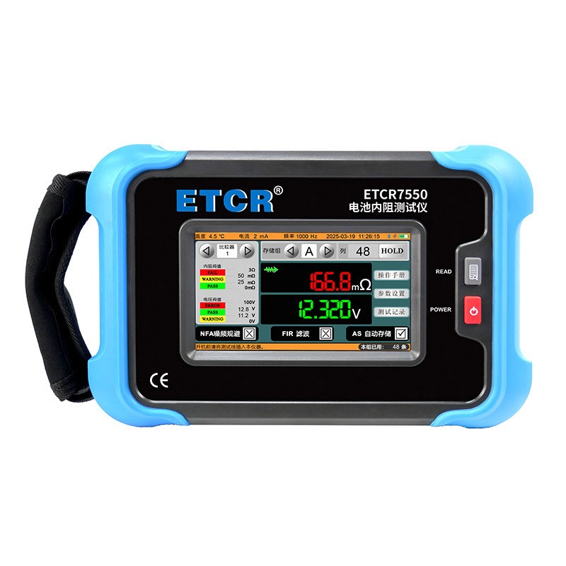 ETCR7550电池内阻测试仪采用5寸触摸彩屏,仪表**美观,量程宽广,分辨率高,操作便捷,携带方便,准确、可靠、性能稳定,抗干扰能力强。是电池生产、电池安装、设备生产、设备维修等场景必不可少的仪器。