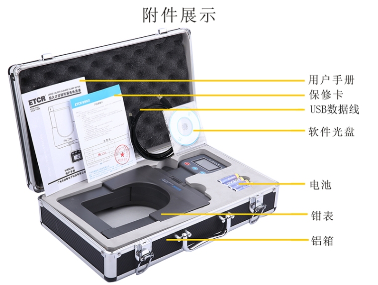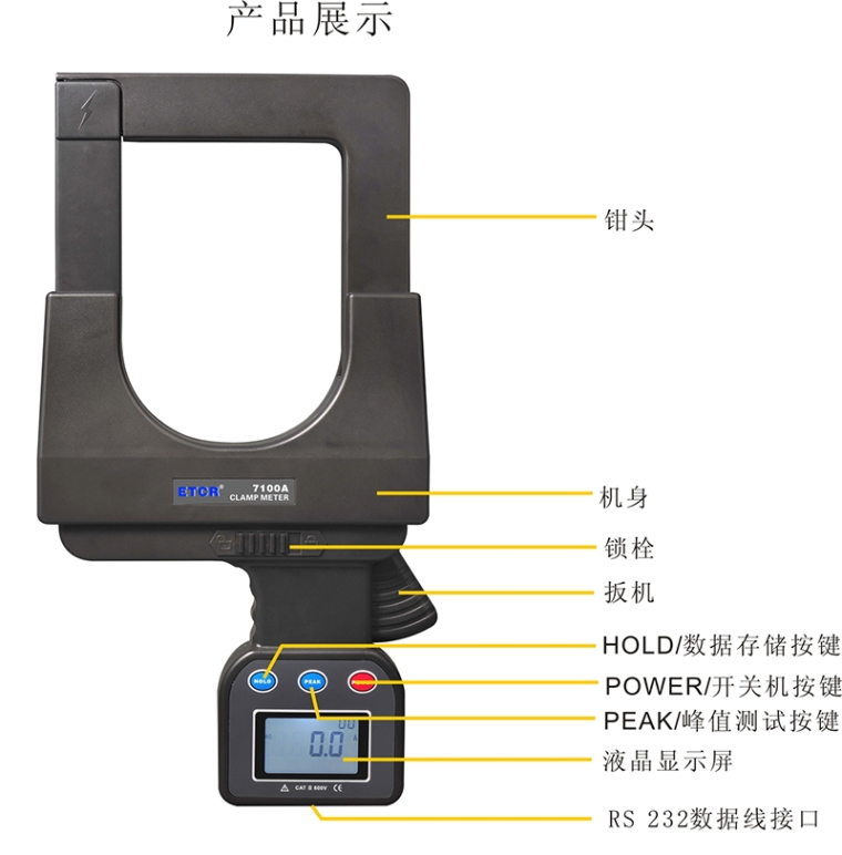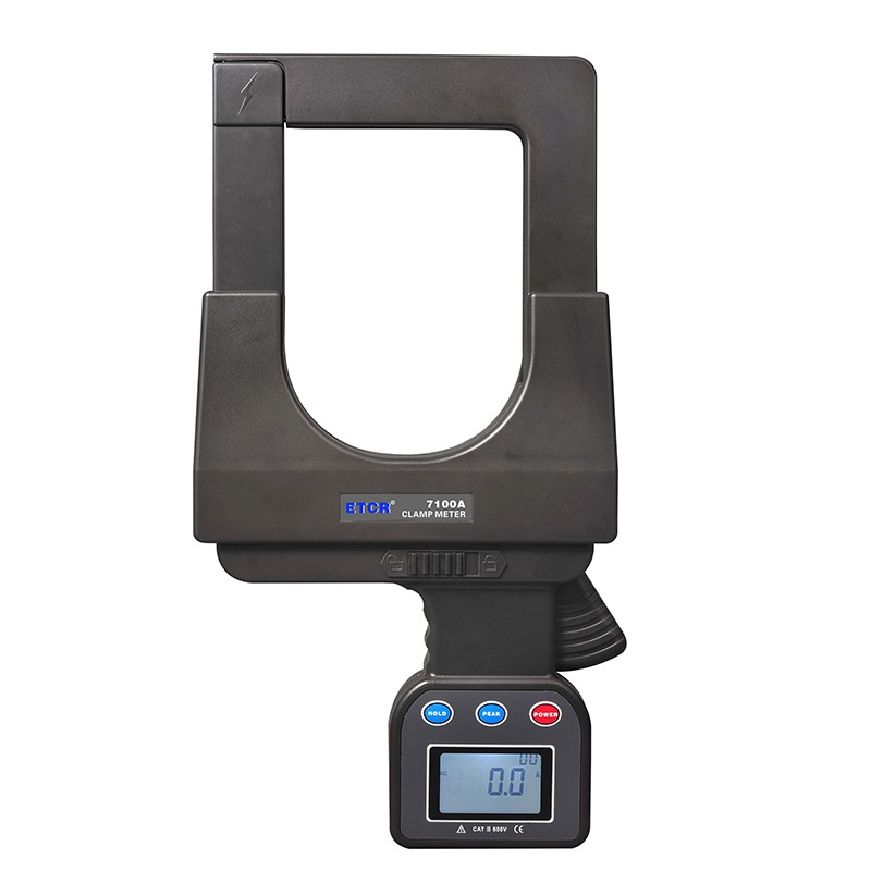ETCR7100系列超大口径钳形漏电电流表其钳头铁芯选用特殊合金,采用磁性屏蔽技术,外界磁场的影响小,确保了常年无间断测量的高精度、高稳定性、高可靠性。仪表具有RS232接口,可存储99组数据,通过系统软件上传所存数据到电脑,便于历史数据读取、保存、打印等功能。仪表还具有背光功能、数据保持功能,是电工**检测的必备工具。