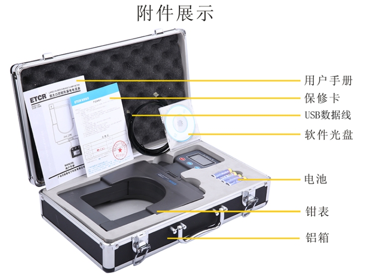 ETCR7100系列超大口径钳形漏电电流表其钳头铁芯选用特殊合金,采用磁性屏蔽技术,外界磁场的影响小,确保了常年无间断测量的高精度、高稳定性、高可靠性。仪表具有RS232接口,可存储99组数据,通过系统软件上传所存数据到电脑,便于历史数据读取、保存、打印等功能。仪表还具有背光功能、数据保持功能,是电工**检测的必备工具。